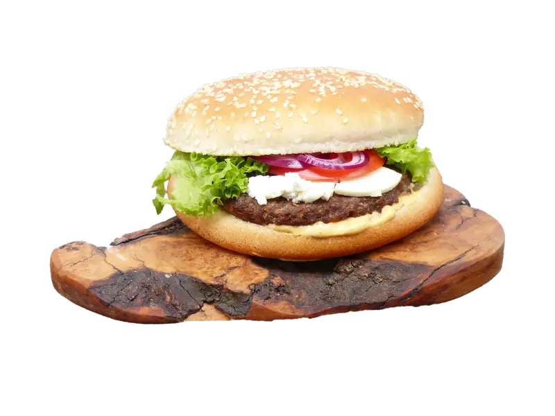 Angus Rindfleisch 125 gr. , Tomaten, Zwiebeln, Salat, Burger-Sauce, Ziegenkäse